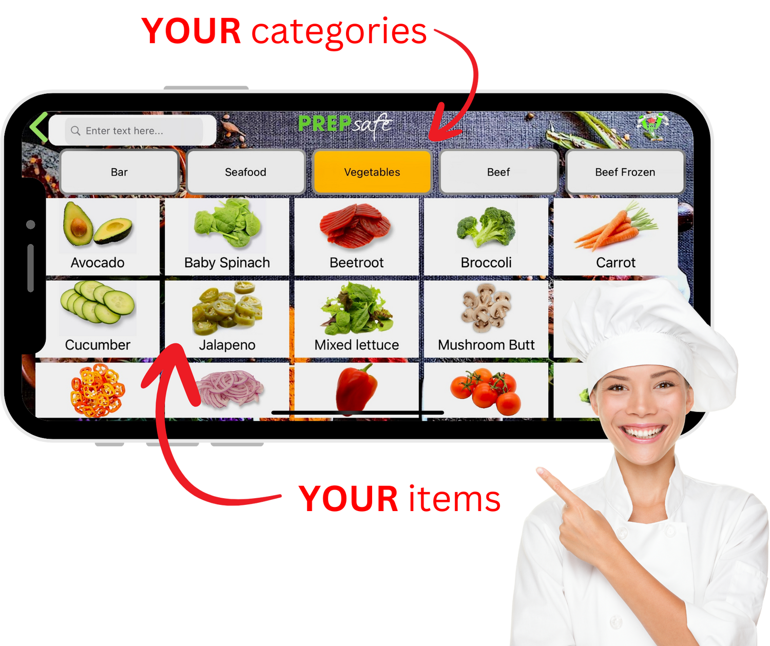 The user friendly app compatible with iOS and Android. It stores all the items and the shelf-life, so staff don’t need to calculate use-by dates. Labels are printed with all the relevant food safety information: Item name, prep date & time, use-by date & time, staff name. It also handles defrost labels, simple labels and a variety of custom labels. New features are often added